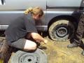 LissaGames during interval in fighting. LissaCharlie talking to a Marshall. LissaOur flat tyre on the gravel road to camp site. Charlie kindly changing it for us. Thanks Charlie. LissaRobin's trousers, with their fabulous 'authenti-vent' design. LissaWarboy, Big Mac and Rusty LissaTurns out its not only women who can be the chocolate vendors. Thank you Womble for being a good sport! LissaThe cat that got the cream perhaps? He does look rather happy :) LissaCharlie trying to find some clevage. Might be in there somewhere, he just hides it REALLY well.