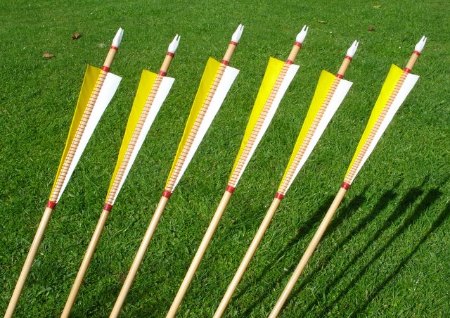 I have half a doz refurbished arrows if anyone wants them. I made them when I first started shooting warbows as a set of target arrows but found that they are way too light for my bows and after breaking one of them clean in half no longer have any use for them.